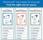 • OTHER PAPER OPTIONS: Scroll down to compare Hammermill print and copy paper for every purpose, including premium presentation-quality color copy paper, cover-weight paper stock, and glossy paper for photo printing